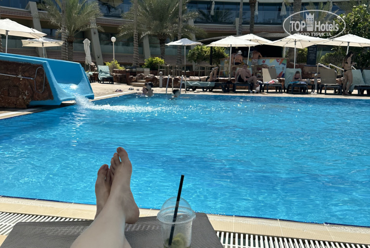 Мы были по системе AI. Можно было большое количество позиций в баре брать бесплатно. В номерах чисто и хорошо. На балконе у нас жил голубь, гнездовался. Много голубей тут. В бассейне мы не купались: голуби и кошки оттуда пьют и птицы моются там) да и на море приехали. Само море за день разное: с утра отлив, до буйков можно дойти, немного грязное бывает. Потом, ближе к 11, уже приливает, и прям супер тепло и чисто, после обеда небольшие волны. Но в целом, море не для любителей много плавать: особо негде разбежаться, мало места, много людей. Еще в море плавают медузы, иногда очень жалят. Песок мягкий, душевые есть. Удобные туалеты на -1 этаже с душем и раздевалкой.