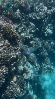 Риф у отеля просто сказочный, есть с чем сравнить. Советую плыть влево до конца. На входе риф уже мертвый, но даже там много рыб. А если плыть дальше, то появляются разноцветные кораллы и подводный мир становится более разнообразным. Рыб-бабочек просто тьма, разных цветов. Много хирургов, в конце рифа огромные рыбы-попугаи, много разноцветных губанов. Из интересного была замечена мурена (плыть влево, середина рифа), впечатляющих размеров каранкс (больше метра).