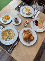 На завтрак всегда были панкейки (резиновые), вафли, йогурты, джемы, яйца в разных вариациях (каждый день жарили прямо по заказу глазунья/омлет), овощи, фрукты, маслины, сыры, колбасы, сосиски, много сладкой выпечки, свежеиспеченные круассаны, что удивило – копченая скумбрия.