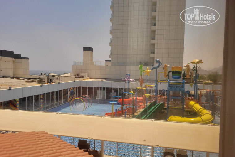 До пляжа из номера можно дойти за одну минуту, что очень удобно в жару. Лежаков хватало. Вода отличная,чистая нефти не было. Один или два раза была пленка на воде в минимальных количествах в течение пары часов, что не мешало плавать. Пляж тоже чистый,песочный .Утром когда плавал видел черепаху, которая что-то ела на дне и совсем не боялась. Есть туалеты и душ, чтобы смыть соль после купания. На пляже находится бар с алкоголем и соками. На территории имеется аквапарк, отлично подойдет детям лет до 8 наверное. Около большого бассейна бесплатный хамам и сауна. Есть несколько магазинов с сувенирами. Цены дешевле в том магазинчике, что располагается ближе к пляжу. Рекомендую попробовать у них финики в шоколаде с орехами внутри.