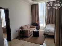 Отдыхали с 27.04.25 по 09.05.25 .Два взрослых и ребенок 11 лет. Отель оставил хорошее впечатление. Нормальная четверка. Приехали примерно в районе 12.00. Пока оформились,переоделись и сходили на пляж, пообедали в ресторане - наш номер был уже готов к 14.00. Никаких доплат не просили с нас. Номер порадовал- две комнаты, каждая со своим туалетом и душем. Находится на втором этаже(надо учитывать, что номера на первом этаже однокомнатные и немного поменьше, но зато дешевле стоят). Удобная, большая кровать, холодильник,телевизор,чайник,вода,кофе/чай в неограниченном количестве. В ванной комнате халаты,тапочки,щетки,пасты и все остальное как обычно. Для ребенка принесли дополнительную кровать, хотя в его комнате есть разборный ,мягкий диван. В шкафу всего две вешалки - маловато, но зато есть много разных тумбочек с ящиками. Кондиционер в каждой комнате с индивидуальным пультом. Есть небольшая сушилка для мокрой одежды. Выставляли ее на улицу и на солнце все сохло очень быстро. Звукоизоляция в номере либо очень хорошая,либо нам повезло с размещением, так как под нами располагалось техническое помещение и соседи были частично только с одной стороны .
