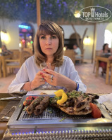 - Восточный ресторан, вопреки моим ожиданиям, он превзошел итальянский, было очень вкусно, сначала подали закуски в восточном стиле с лепешкой, затем очень вкусный тыквенный супчик, далее шашлык, люля-кебаб и овощи на мангале, причем сама подача очень оригинальная, молодцы. Правда десерт в виде рисовой каши с кокосовым молоком и ванилью, но мы его уже все равно не смогли съесть. Официанты полная противоположность «итальянцам», все быстро, шустро, доброжелательно. Рекомендую, очень понравилось.