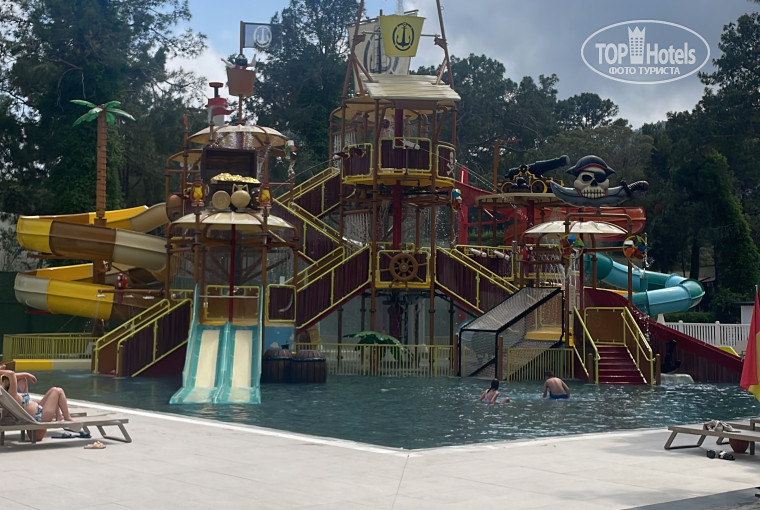 На территории отеля имеется 7 бассейнов в одном из которых большие детские горки. Бассейн с горками мелкий, глубина примерно 30 см. Скат с горки в лоток, что безопасно для деток. Второй бассейн для самых маленьких. Третий - большой бассейн с подогревом в спа центре, глубиной 140 см и все остальные тоже 140 см.