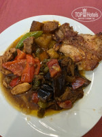Кормили достаточно. Как обычно европейский завтрак. Кофе в кофемашинах можно самим наливать. В обед два вида супа-пюре. Мясо (кроме свинины) и курица в разных видах. Вечером рыба и мясо на гриле. Гарниры разные. Паста, пицца, сладости. Фрукты (дыня, арбуз, апельсины, яблоки, груши и мушмула) всегда. Напитки разные можно заказать у официанта или самим подойти к бару. С 15 до 16 часов выдавали мороженное. На пляже свой бар и свое кафе. Там можно покушать в обед. Но из напитков там только пиво и безалкогольные напитки. В воскресенье был всемирный день матери. И перед ужином всем женщинам дарили цветы. Был праздничный ужин с красиво украшенными блюдами и необыкновенным тортом.