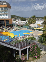 Территории у отеля нет. Главный корпус и сразу бассейн. Еще на некотором расстоянии есть "Анекс" корпус. Но он был закрыт. Погулять можно в город, если выйти в сторону к морю и повернуть налево. Там магазинчики и базар. Там можно купить кофе, сладости, подарки, фрукты (продавали вкусную клубнику). На экскурсию съездили не от туроператора, а заказали сами. Посмотрели еще в России по интернету. Остались довольны. Так как за один день посетили множество мест и даже покатались на яхте и покупались в зеленом озере.