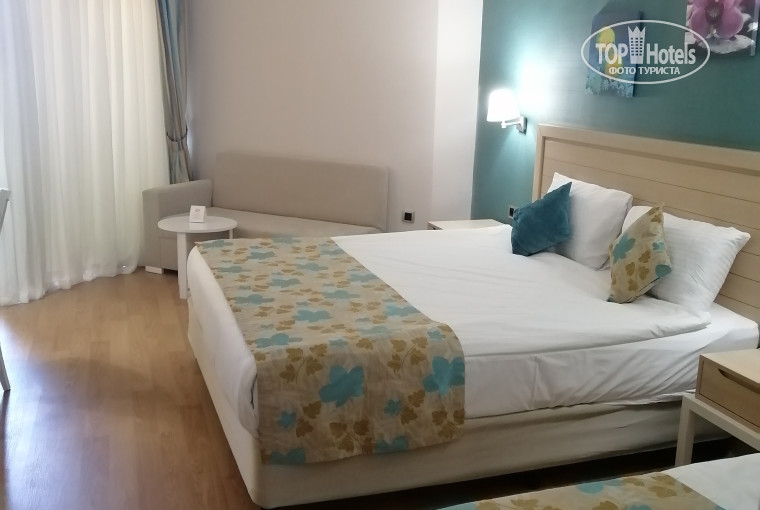 Отдыхаем в отеле семьёй с 5 по 16 мая 2025г. Семья 2 взрослых и 1 ребёнок 12 лет. Заселение быстро, приехали к обеду. Номер дали с видом на поле над входом в отель. Отель понравился рекомендую. Везде чисто, еда вкусная-разнообразная, напитки хорошие, интернет супер в отеле и на пляже, пляж шикарный песок без камней! Персонал все молодцы стараются, как пчелки. Анимация очень слабая ((