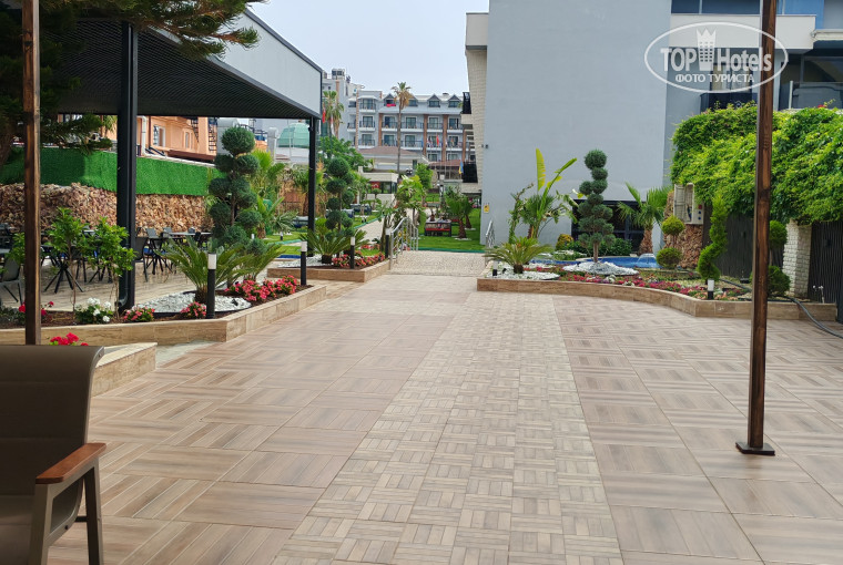 Территория отеля компактная, но уютная. Есть зона с горками, детская площадка под навесом.