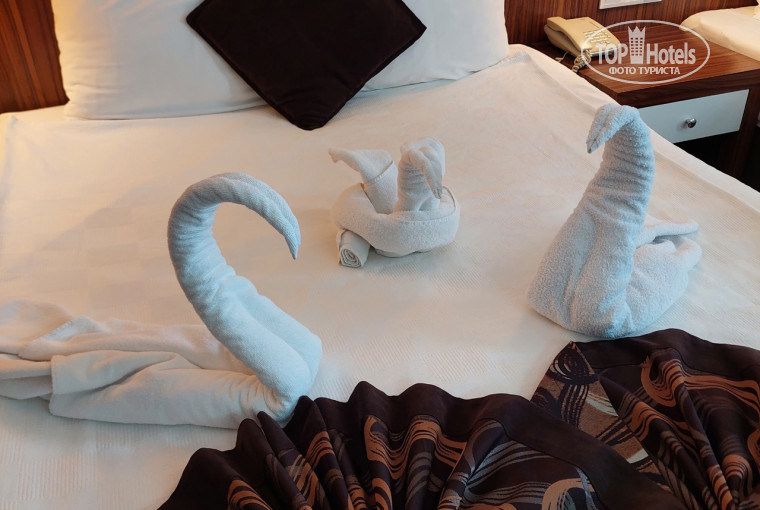 Номера в хорошем состоянии, мебель не новая, но и дома вы не меняете мебель каждый год. Все хорошо функционировало, а это главное. Убирались и полотенца меняли каждый день, даже если полотенце не бросишь на пол. На постели почему то каждый день меняли верхнюю постынь.