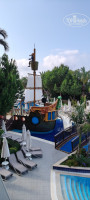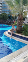 Поделена на две зоны и разделена дорогой, но скажу сразу что она не как нам не мешала. Через дорогу есть подземный переход, он очень красивый весь светиться играет музыка. По территории ходят павлины. Вся территория очень ухоженная, зеленая, везде стоят мусорки, много лежаков где можно полежать и полюбоваться морем. Имеется два пирса. Так же на второй территории имеется много бассейнов (два из них с морской водой) - они подогреваются. Имеется 3 аквапарка (один для взрослых и два для детей постарше). Общее количество горок во всех аквапарках 28. Нам с ребенком понравилась кататься с город на плюшках. На основной территории тоже имеется аквапарк - это пиратский корабль (он тоже подогревается). Большой бассейн сделан по форме волне и разделен мостиками для перехода на другую сторону. Имеется бассейн инфинити где можно купаться и наслаждаться морем.