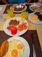 Питание:в основном ресторане практически однообразное,но голодными не будете.На завтрак фреш из гуавы,свежевыжатый апельсин,все соки пакетированные разных вкусов,молоко,кофе из кофемашины вкусный.Сок манго и клубничный,выпивка по запросу у официантов.За чаевые у вас будет всё быстро и сразу.Весь алкоголь хорошего качества.Фрукты:слива,яблоки 3 сортов,груши,дыня 2 сортов,финики,бананы,апельсины,грейпфрут.Очень вкусные десерты,торты.Йогурты в стаканчиках,вкусные.
