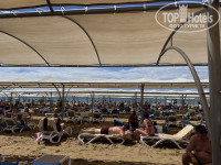 Когда мы приехали, была погода не очень : всего +20 и пасмурно, а потом вообще пошел дождь. Поэтому в тот момент показалось, что лежаков на пляже много и проблем не будет. Но на следующий день мы задержались на встрече с гидом, приехали на пляж в 10.30. Свободных лежаков 0. Я поймала мальчика- уборщика , он пообещал, что сейчас подвезут еще лежаки. И их действительно два раза подвозили штук по 7, но расторопные мужчины каждый раз утаскивали из под носа. Короче говоря пришлось на время расположиться на стульях в пляжном баре (((. Пляж песчаный, широкий. Лежаки новые. Тенты от солнца, что гораздо удобнее зонтов. Пляж не слишком чистый. Мусор вечером не выносят , только утром. В песке не мало мусора, палок… Иногда можно уколоть ногу, надо внимательно смотреть под ноги. До моря надо пройтись метров 30. В море до приемлемой глубины идти метров 50. Долго мелко.
