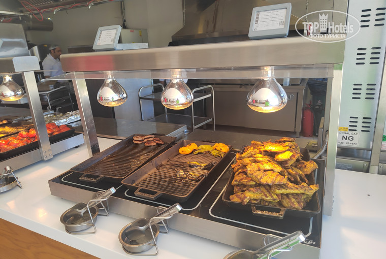 Отдыхали семьёй с 24 мая по 2 июня 2025 года. Это не новый отель, а бывшая Зигана, перекупленная. Из плюсов - это красивая, ухоженная территория. Красивые домики, чистейшие бассейны, хороший ремонт номеров. Нам сначала предложили номер на первом этаже, но за доплату мы поменяли на второй, т.к. на первом частом запах канализации и много насекомых ( ещё по Гипсофиле помним), уборка хорошая, ежедневная, т.к. мы платили горничной. Море в это время года очень комфортное, приятное, но заход в море с берега ужасный, очень острые камни, сын поранил пятку, я содрала родинку, много людей с пластырем, поэтому лучше заходить с пирса ( их здесь три, в том числе с кабанами). Сам пляж большой, чистый, лежаков много, всем хватает, даже возле бассейнов, которых здесь много, есть два с деревянным настилом, очень чистые, плитка идеальная, плавать одно удовольствие. Горки для детей есть, но мы не катаемся, уже выросли. Много баров, местный алкоголь лучше не брать, у меня от шампанского была изжога, prosecco понравилось, неплохие коктейли, импортный алкоголь довольно неплохой выбор. Есть кофейня, можно посидеть, попить неплохой кофе с пирожными. Мороженое было ужасное, из козьего молока. Никто не брал, многие об этом говорили, 1 июня привезли хорошее мороженое, сразу много видов, народ набежал. Питание здесь худшее из всех турецких отелей, в которых мы бывали, а отдыхаем мы несколько раз в год, но такого не было никогда. Я не буду сравнивать с Аккой ( с их интернациональной командой поваров, где каждый день тематическая кухня) очень и очень далеко. Но если брать соседние Гипсофилу и Байю Салима - эти отелю такие же по концепции, но они гораздо сильнее по питанию. Здесь очень всё скудно! На завтраки холодные каши, их никто не берёт, оладьи резиновые, пончики все масленные. И даже нет лукума! Ну как так! Турция называется!!! Гриль вроде есть, но есть там нечего. Один лук, интересно кто его ест? Из мясо только курица отбивная, супер невкусная, рыба на гриле дорода или сибас, есть невозможно, турки не умеют готовить рыбу! В закусках был салат с консервированным тунцом. Из суши съедобный был соевый соус. Мне, любителю рыбы и морепродуктов, иногда в тарелку положить кроме риса и овощей было нечего. Питание здесь рассчитано для мусульман, а не для европейцев, которых здесь почти нет, пара семей из Польши, пара из Чехии и несколько "новых европейцев" украинцев, основной контингент - казахи. Итальянский ресторан тоже очень бедненький, спагетти Болоньезе, равиоли, пицца двух видов, понравилось тирамису. В греческий идти смысла нет, при таком питании надо ещё отдыхающими доплачивать, а не наоборот. Есть перекусы, но повар работал без перчаток и разговаривал по телефону, а потом грязными руками заворачивал лаваш. В общем питание здесь на твёрдую 1-. Конечно ехать за полную стоимость -это D&G (дорого и глупо), но мы купили путёвку со скидкой 40%. Это реальная цена. Не рекомендую.