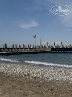 Пляж: узкий но длинный, вход типичный для этого региона крупная галька, поэтому неженки плавают с пирса или в тапках. Пирс один есть пустой, второй достаивают будут лежаки и кабаны