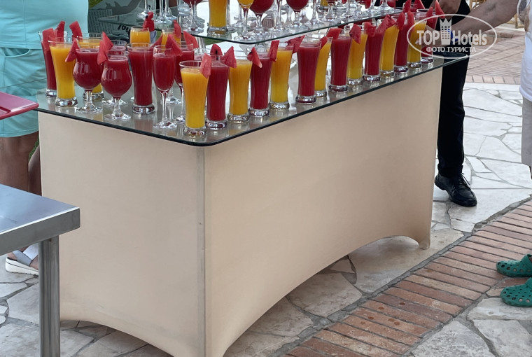 Отель выбирали с целью спокойного пляжного отдыха и не ошиблись. Море восхитительно! Но все по порядку. Был заявлен стандартный номер на 2 взрослых человек. Нас заселили в хороший номер в 32 корпусе, в номере большая ванная комната, большая и удобная кровать, диванчик, столик, 2 кресла, 2 зеркала (большое во весь рост и маленькое с туалетным столиком), телевизор с русскими каналами, кондиционер, сейф, мини бар, большой балкон и бонусом Wi-Fi (хотя говорили, что интернет только на ресепшен) + маленькая комнатка для детей, в которой 2-х ярусная кровать, телевизор, стол, стулья, вместительный шкаф. Уборка в номере на 4 (полы под диваном и тумбочками не мыли), но в остальном без претензий. На ресепшен очень приятный молодой человек по имени Ишан (вроде правильно запомнила). Возникающие у нас вопросы решал без проблем и с неизменной улыбкой. Развлечения имели место быть: днем ребята аниматоры приглашают на аэробику и разные игры, но не навязчиво. Хочется отметить молодого человека по имени Давид. Один из гостей отеля обратился к Давиду с просьбой помочь ему организовать музыкальное поздравление его супруги с 55 летним юбилеем, Давид моментально откликнулся на просьбу. Перед началом вечерней развлекательной программы включили минусовку песни и гость сам спел песню в честь дня рождения жены. Было очень трогательно и приятно. Территория отеля большая: 3 больших бассейна поэтому всегда есть свободные лежаки, 2 детских бассейна, SPA, фитнес зал, детский клуб, сад, все очень красивое. Собственный пляж отеля с многочисленными лежаками (места всегда хватало), пологий вход в море, бар на пляже и возможность перекусить картофелем фри, пиццей и бургерами. В отеле 3 бара, алкоголь местного производства (виски, джин, текила, ром, водка, пиво нормальные), вино не понравилось. Такдже бармены делают вкусные коктейли. В ресторане ежедневно мясные блюда (говядина, курица, рыба). В день праздника Курбан были предложены жаренная индейка и баранина, в рыбный день - креветки, крабы. На завтрак ежедневно овсяная каша, яйца в разном виде. Понравилось, что еда не перченая, для желающих разные специи всегда на выбор. Разносолы, отмечу оливки, фрукты также разные, но больше всего понравились финики и зеленая дыня! У нас был поздний выезд, проблем с питанием после сдачи номера и до выезда не возникло. Может многое упустила, но в итоге хочется сказать СПАСИБО отелю, за наш прекрасный и спокойный отдых и дальнейшего процветания.