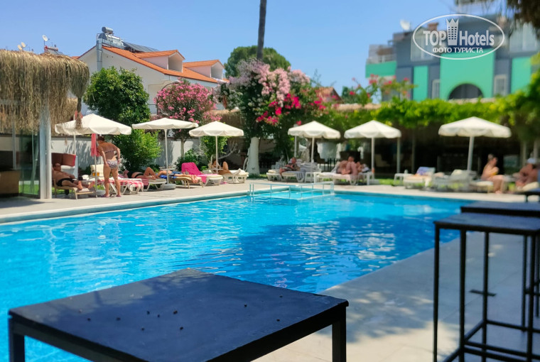 Были в этом отеле с 07 по 17 июня 2025. Нам очень понравился отдых в этом отеле, и оставил самые приятные впечатления, а особенно приветливый и доброжелательный персонал. Хочу отметить Музафера и Сезгина, это люди, которые вас встречают с улыбкой, добрые и отзывчивые мужчины. В отеле каждый вечер проводится дискотека, с музыкой на любой вкус и возраст, под управлением Музафера. Иногда бывает живая музыка и анимация. Повар и его команда шедевральные, столько вкусных и разнообразных блюд и всегда всего хватало. Массажист Сулейман с волшебными руками, такой массаж стоп и пальчиков я никогда не забуду. Номер был на 4м этаже с видом на ул.Лиман и горы. До пляжа 400м, по пути к пляжу центральный парк с вайфаем (смотрите столбики ). Отель бюджетный с простеньким ремонтом, но в номере есть все необходимое. Питание все включено, а также напитки и бар с 11 до 22ч. На баре вас встретит улыбчивый Али. Территория отеля с 2 бассейнами, уютная и ухоженная. Рекомендую всем, кто хочет отдохнуть по типу все включено, недалеко от пляжа, весело и при этом бюджетно. За территорией отеля продает туры на экскурсии Шамиль (у гида брать будет дороже), который делает на некоторые экскурсии скидки, в особенности при покупке второго и более туров. Цены на туры сравнивала, у него половина дешевле.