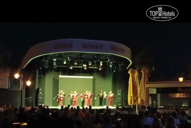 Дневная анимация абсолютно стандартная. На пляже бочча и волейбол. У бассейна йога, дартс, аква-аэробика. Днем до обеда и после обеда работает детский клуб, где есть русскоговорящие аниматоры. А вот вечернее шоу хорошее. Сначала конечно стандартное детское мини-диско, а в 21 час шоу программа. Там почти всегда приглаженные артисты. Африканские танцы и акробаты, турецкое шоу, колумбийское шоу, майкл джексон шоу, фокусник, живая музыка и т.д.(скинул фото какие у нас программы были за 2 недели, и кстати каждую неделю новое было)После анимации потом до 23 музыка и дискотека у сцены. Так же после анимации идет дискотека либо на минус 2 этаже (с 22-30 до 1-30) либо выездная в сиде (аниматор ходит зазывает спрашивает кто поедет) В общем вечерняя движуха нам понравилась. И еще из плюсов когда начинается вечернее шоу то открывают детский клуб и с детьми сидит детский аниматор на время вечерней взрослой анимации что очень удобно (где-то до 22-00 - 22-30). Анимация проходит на английском немецком и русском языках.