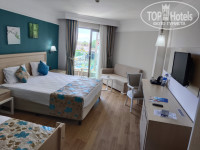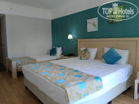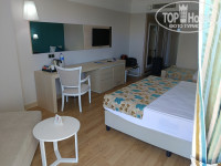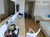 Приехали в отель часов в 9 утра, номер пришлось ждать до 14 часов, раннего заселения не было т.к. отель заполнен на 100%. Но браслеты одели сразу же и забегая вперед выезжали мы уже после 12-00 и браслеты не срезают и можно пользоваться всеми удобствами отеля до момента выезда. Номер дали в дальнем 3м корпусе на 3м этаже с видом на бассейн и соседний корпус. Номер хороший видно после ремонта, чистый, мебель новая целая не заюзаная(кровать двухспальная и односпальная плюс диван еще), мини-бар заполнен вода сок газировки разные, пополнялся каждый день, чайник с чайно-кофейным набором в ванной душ тропический и лейка, мыло и шампунь в дозаторах (для кого-то это минус возможно),в тюбиках никаких гелей ласьонов и т.д. не было, но были ванные принадлежности ( палки для ушей шапки пилочки) щеток и пасты не было, как и тапочек и тем более халата. Сейф бесплатный. Кондер работал хорошо. Слышимость хорошая конечно, но после 23 часов вся анимация утихала, в соседних номер бывало слышно телефон, но в целом соседи не шумные были и спать не мешало ничего)