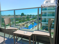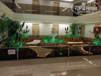 Территория небольшая, отель состоит из трех корпусов. Бассейн большой вдоль всего здания, есть детский бассейн и бассейн с горками. Так же есть номера с выходом к своему небольшому бассейну (находятся слева от горок в 3м корпусе) между корпусами есть зоны с беседками лежаками креслами. Рядом с 3м корпусом у бассейна есть 2 стола для настольного тенниса (бесплатно) В первом корпусе расположен ресепшен и лобби бар, на минус 1м этаже находятся и главный ресторан (в него можно и с 3 корпуса зайти с другого края) и аля-кард ресторан и бар который работает 24 часа. Так же там есть ряд магазинов. На минус 2м этаже расположен спа-центр (сауна и хамам бесплатно, с 9 до 19 часов работает, в нем же и пляжные полотенца выдают) тренажерный зал, комната с бильярдом и детскими игровыми автоматами (это платно все) и дискоклуб.