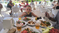 Кормили отлично, выбор блюд широкий и разнообразный. Из мяса в основном разные виды курицы и индейки, а также говядина. Салаты, овощи, фрукты - этого на любой вкус. Сладости - тоже, был даже мед в сотах. Помимо ресторана, который работает в определенные часы, на улице всегда открыт снек-бар, где тоже можно сытно питаться, в специальные часы жарят птицу и овощи на гриле, делают фондю, раздают мороженое, сладкие арбуз и дыню.