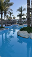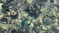 Пляж. На пляже 2 пирса, и еще 2 у соседнего альбатроса, туда тоже можно ходить, но баром там пользоваться нельзя, только своим. Пирсы метров 10, рыб много! Даже мурену видела. Но мне не понравилось из задумка с пляжем, какими-то ступеньками по 3-5 лежаков, неудобно и все заняты, плюс у 50% лежаков нет навесов от солнца. И чтобы попасть на пляж надо пройти по переходному мосту, сделан интересно, красиво и потом 105 ступенек вниз. Для людей с больными ногами, с детьми с колясками этот отель не рекомендую! Да там и контингент отдыхал до 50 лет примерно, стариков было очень мало.
