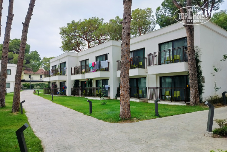 Отель состоит из множества небольших домиков в сосновом лесу,бетонные дорожки,всюду указатели,не заплутать,площадь огромная-есть где гулять,поэтому за все время отдыха за ворота так и не вышли-не было необходимости.