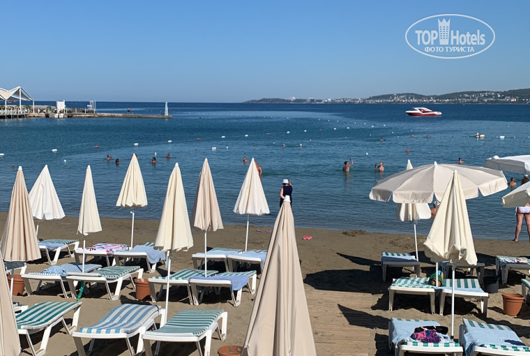 Отель огромный. Минусы: ресепшн- одели на 20 лет детский браслет, выгнали девушку с бара и пляжа. Переодели браслет ну особо и не извинились, три дня ходила с красным браслетом. Интернет- вроде есть везде, но нормально работает только на ресепшн и в номерах. Анимация взрослая просто ужас, они будто из 90-х, скучно и шутки ниже пояса. Дискотеки с 23 в баре около пляжа: сочи на три носи, кадышева и король и шут и польские песни. Мрак! Питание офигенное! Горки, пляж, бассейны супер! Шезлонгов много и всегда можно найти в тени или где нужно вам- отлично. Чистота отлично. Уборка номеров- ленивая, скажите будет лучше. Отель для детей! Им место просто рай! Умотать тут можно даже самого активного. Взрослым вечером скучно, анимацию надо менять всю!