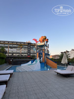 • Территория: Вся территория отеля хоть и не большая, но очень ухоженная, с красивым ландшафтом и чистыми бассейнами (один большой и один поменьше для взрослых). Есть сцена, на которой проходят вечерние шоу для детей и взрослых каждый день. Раз в неделю была очень веселая вечеринка у бассейна. Также на территории есть детские водные горки, снек-бар, тренажёрный зал, СПА-центр и детские зоны.