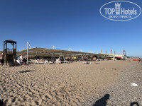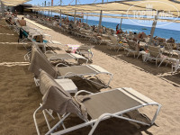 На пляже чисто, лежаки под общим тентом. Близко к друг другу. Мне так не очень нравится. Пляж небольшой (в длину).