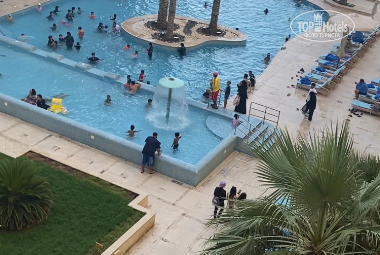 Сначала в этот отель прилетела младшая часть семьи и были в восторге затем присоединилась я. Заселяют сразу (в Эмиратов лето не сезон) - туроператор забыл предупредить, что будет курортный сбор, номера просто отличные, чистые, просторные, есть все необходимое. Питание очень разнообразное - и ягоды и мясо, и рыбы и креветки и тд Море фруктов и десертов. Персонал приветливый, много киргизов, говорящих на русском. На ресепшене свободно говорят на английском. Уборка и смена белья ежедневно. Все белоснежное. В ванной отличная косметика и все средства гигиены. Территория выходит на 2 стороны залива, достаточно большая для прогулок. В этом году отель на реставрации. Много людей было только под выходной - в какой-то мусульманский праздник.