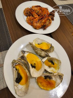 В обед и ужин ещё больше. Каждый день новый суп с тефтельками, с говядиной, с пельмешками, с курицей, и тд лапша каждый раз разная можно попросить острый или наоборот не острый. Мясо тоже много вариантов и всегда новое свинина, говядина, утка, баранина и рыба в разных вариациях тушеное, жаренное, запечённое, варенное, не всегда, но бывало попадалось и острое. На гарнир в основном рис и овощи иногда паста или картошка. На ужин ещё готовили барбекю с мясом рыбой и креветками. Также мидии устрицы. Напитки чай кофе соки и местное пиво с вином в обед и ужин. Голодными не уходили.