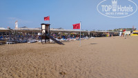 Пляж хороший, большой, песочный. Лежаков много. Заход в море хорош скорее для семей детьми, мелко и песок, а для того что бы поплавать взрослым нужно пройти от 60м до 100м примерно, практически до буйков. Автобус действительно ходит не совсем по расписанию, но особых проблем это не доставляло. Мы часто на пляж ходили пешком 8-10 минут, под горку удобно, а вот обратно старались дождаться шатл. Старайтесь не тянуть до последнего отправления с пляжа, так как народу очень много, и все могут не влезть, и тогда точно пешком.