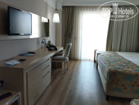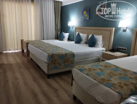 Номер у нас был Фемели, с видом на бассейн. Всё работало, номер чистый, большой с одной двуспальной, и двумя односпальными кроватями. В душевой шикарная лейка под потолком. Вот только балконная дверь, к сожалению, не выполняла свои функции, и если на улице было громко, то и в номере было также громко. Соответственно, дневной отдых в номере был исключён из программы нашего отпуска.