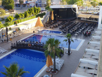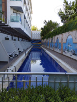 Территория у отеля очень маленькая. В основном всё возле бассейна. Правда, практически всегда можно было найти один-два свободных лежака, а это прям редкость, ведь обычно люди раскладывают полотенца и до вечера к лежакам не возвращаются (в этом отеле такие туристы тоже присутствовали). Вечером особо погулять не где. Только рынок и Мигрос.