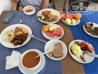 В столовой было всё свежее, выбор не очень большой, но мы не голодали). Из фруктов: яблоки, арбузы, дыни, страшненькие, но очень вкусные апельсины. Напитки:спрайт, кола, фанта, чай, кофе не очень). Алкоголь: пиво нормальное, вино кислое; крепкие напитки были, но мы не пробовали.