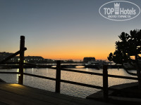Территория у отеля очень маленькая, практически состоит из одного бассейна (на фото) и узкой полоски вдоль моря. Есть второе здание через дорогу, в котором располагается спортзал. Попасть туда можно по надземному переходу не выходя за территорию. Еще есть остров с баром, на котором проходят вечерние активности (если их можно так назвать).