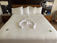 По приезду в отель нас долго не могли найти в бронировании (видимо из-за того, что бронь была на мужа), что, конечно, немного напрягло. В итоге нас нашли, оформили документы и повели заселяться в номер. В номере нас ждала одна двуспальная кровать..... Очень странно, когда у тебя оплачено проживание с дополнительным местом, нас привели в номер без доп. места. Я попросила предоставить нам номер с раздельными кроватями, но девушка сказала, что сейчас таких нет, когда освободятся не известно, и, что это вообще самый лучший номер. Хорошо, что у меня дочь, решили остаться, а если ребенок другого пола и достаточно взрослый?). Долго уверяла меня, что данный номер имеет именно категорию delux но у меня до сих пор остались сомнения, т.к. по площади он был больше похож на стандарт. Единственный его плюс заключался в том, что он имел прямой вид на море (кстати шикарный))). В общем по заселению у меня до сих пор остались вопросики...