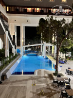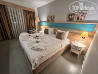 В отель приехали около 21 ч (до Сиде ехали пару часов). Первое впечатление было ужасное, так как это вообще не первая линия, а вторая (в лучшем случае). Идти до моря минут 10 быстрым шагом (по жаре ощущается, как час), а с детьми минут 20, если не больше. Гольфкары ходят по не совсем понятному расписанию, да и на них всегда очередь была. Ходили каждый день несколько раз туда-сюда, но для нас это особо не проблема, так как ходить любим, но с детками будет тяжко. Поэтому не ведитесь, что это первая линия, вообще нет!!!!!! Причем идти надо не по территории отеля, а по каким-то закоулкам, где иногда ездят машины. А если идете днем, то там палящее солнце. Лично для меня первая линия - это, когда вышел из номера и идешь по территории отеля до пляжа, а здесь нет. Надо идти по какой-то дороге.