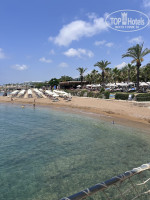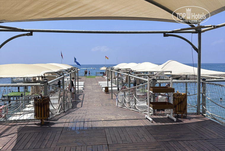 6. Море: нам очень повезло с погодой температура была как в конце мая начале июня. Море было теплое ласковое. Пляж большой, вход есть пологий с левой стороны, а с правой стороны очень даже каменистый. Надо идти купаться в сторону большого аквапарка. Лежаков много, всегда есть свободные.