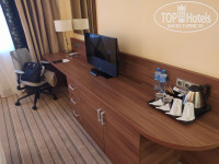 Я переехал в номер 341, в нём явно меньше слышен шум вентиляции. Далее, кондиционирование, оно вроде работает, но температура, после пару часов включенного кондиционера, не сильно изменилась, так что кондером я остался не сильно доволен. Сам номер нормальных размеров, есть удобное кресло с подставкой под ноги, стол с удобным стулом, удобное рабочее место, интернет правда на троечку,чуть жесткий матрас на кровати, но в целом всё ок. В ванной много шампунчиков и гелей, бритвы разовой нет, так же я не обнаружил и фена, жаль. В номере много чайно-кофейной мелочёвки, иногда приятно попить кофе прям в номере.