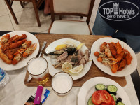 В отеле много своих прикольных фишек, Кофейня нескафе с холодным карамель кофе, там и горячий и холодный и шоколад, очень вкусно. Холодная комната с фруктами, комната с апельсиновым фрешем (давить самим), но прикольно, кондитерская в 2 местах, я, на завтрак люблю сладенькое. В этом отеле первый раз, жили в номере 6242, не знаю по букве корпуса, какой это, рядом с зоо и аква, санузел не очень прям новый, но все работало исправно, муравьёв не было) , матрасы хорошие в меру жёсткие, спать комфортно, в номере есть плед, я мерзляк, с кондеем полный порядок😅. Нас местоположение устроило полностью, от всего было близко, да и пройтись после такого стола не помешает. По еде не знаю, кому тут может не понравится, все вкусно и много и в разных вариациях, на завтрак отварной язык, очень много качественно приготовленой говядины, много овощей и сыров, рыба тоже всегда есть и не один вид, я не фанат рыбы, но пробовала дорадо, вкусно и не передержано, рыба была не сухая. Попали на раков, за 9 дней были 1 раз. До лепешек не дошли, но они есть) По питанию отелю однозначно 5. Единственное, что не понравилось, это круассаны, они не на масле, ну точнее не на том, какое оно должно быть. Алко тоже хороший, делают коктейли, вино вкусное, пиво маман тоже понравилось, особенно под раков😅.