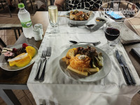 По питанию - все отлично, еда и напитки прекрасного качества! Ресторан расположен прямо на берегу океана, классно завтракать и обедать с видом на бирюзовые водные просторы, лодочки и кораблики..., а ужинать под шелест волн... Местные коты добавляют позитива.