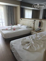 В итоге дали неплохой номер с видом на детский пиратский аквапарк и дорогу. От дороги конечно шумно но не критично, слышимость в номере очень сильная, половину отпуска мы соседей не слышали, а половину отпуска заехали иностранцы и безобразно себя вели : вечером в номере собирались толпой , пели песни на своём языке , смеялись, и так далее , было шумно 🤦🏼♀️. От этого не застрахован, ни один отель, ни один клиент, но рассказываю как было.