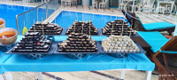 Очень все понравилось! Повара просто молодцы! Из всех последних четверок, где мы были( а были мы в Кемере в Голден Лотусе, Викинг Гарден, Лимс Бона и в Гидрос, когда он был четвёркой ) тут готовили вкуснее всего и разнообразнее. Каждый вечер гриль, лепешки с начинками, баранина была просто волшебная, пицца, картошка кумпир меня порадовала, обычно ее мы раньше ели в пятерках, а фрукты просто порадовали: вкусные арбузы, дыни, мини бананы, нектаринами просто закормили каждый день, виноград сладкий, яблоки, груши и апельсины я не ела, т к и дома их полно, но тут большой выбор по фруктам. Были рады, что не пришлось идти на базар и их покупать. Очень вкусная пахлава , я в нее влюбилась просто! Рыба: была дорадо пару раз, горбуша и лосось на гриле, всякую скумбрию не считаю , я ее не ем. А креветки были просто божественные ! Курица гриль очень вкусная! Короче я в шоке от людей, кто писал в отзывах, что голодал тут, бедняги просто! Мы были каждый раз приятно удивлены вкусной едой.