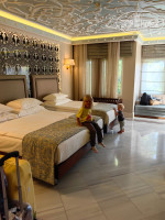 Отдых с маленькими детьми был у нас впервые и все наши опасения были полностью развенчаны благодаря правильному выбору отеля! Отдельный трансфер из аэропорта на минивэне, в котором была только наша семья, с самого начала отдыха показал уровень отеля и его отношение к своим клиентам. По прибытию в отель, без ожидания времени заселения, нас отвезли на электрокаре в наш номер. Спасибо большое за этот шаг, так как с маленькими детьми после долгой дороги это очень приятно! Территория отеля - это отдельная история, которую можно рассказывать очень долго! Отель утопает в зелени, описать словами сложно, нужно просто увидеть! Номер шикарный, просторный, стильный, на верхнем этаже. Уборка ежедневная, смена полотенец и т.п. все как полагается. Каждый день обновляли бар и вечером приносили очень вкусный лукум! Лифт работает, все комфортно. В отеле отдыхает много людей с ограниченными возможностями, им также достаточно комфортно передвигаться по территории и в зв корпусе отеля. Принципиально не посещали бассейны в отеле (про них ничего сказать не могу) - мы ехали наслаждаться морем. И море здесь шикарное... Прекрасный пологий песчаный вход подходит для отдыха с детьми, широкая полоса песка (от шезлонгов до моря метров 50) позволяет играть и бегать с детьми, строить песчаные замки. Гулял довольно далеко по пляжу в обе стороны от отеля и могу с уверенностью сказать - это лучший пляж в данном районе! Комфортные шезлонги с большим зонтом всегда позволяли найти тень, кстати шезлонги довольно далеко удалены друг от друга, нет чувства толпы. Есть конечно нюансы как и везде, где удавалось отдыхать - утренние походы на пляж для занятия шезлонгов. Если так не делать, то после завтрака можно не найти свободных мест. Но это вопросы не к отелю а к людям, некоторые посетители, отдыхающие у соседнего бассейна, занимали места и у моря и у бассейна... Очень понравился сервис доставки напитков к шезлонгам через QR-код. Напитков очень много, все качественное. Очень вкусные коктейли, бутылочное пиво. Обедали в ресторане у моря, очень понравилось, так с детьми намного проще. Завтрак и ужин в главном ресторане - все на высшем уровне. Не буду перечислять всех яств, скажу лишь, что такому разнообразию может позавидовать каждый! Отдельное спасибо за детский стол! Переживали, что будут кушать дети перед вылетом и потом поняли, что зря! Была даже гречка с молоком!!! Про кондитерскую писать наверное не стоит - и так в каждом отзыве ее восхваляют, нам тоже очень понравилось! В последние дни ужинали авторскими блюдами от шеф-повара и наслаждались! Конечно хотелось бы, чтобы официанты подходили чаще за стол во время приема пищи, но это не создавало проблем. Детская вечерняя дискотека посещалась каждый день, после были очень зрелищные и интересные шоу-программы! Многие туристы возвращаются в данный отель многократно. И мы теперь из их числа! В октябре 2025 года также летим в этот прекрасный отель за хорошим настроением и незабываемом отдыхом!