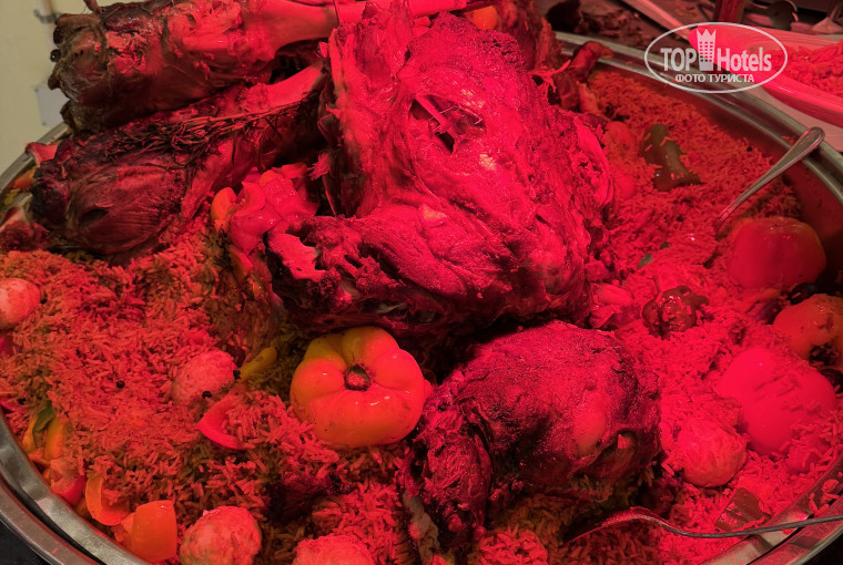 Фрукты в ресторане были(арбуз,дыня,виноград,яблоки,бананы,финики,виноград)Сезон клубники только начинался и мы ее покупали на рецепе в магазине 1$ целый лоток.