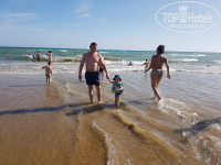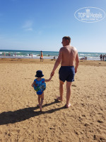 До пляжа 300 метров, 7 минут спокойным шагом с маленьким ребёнком. Ходит шатл. На морской части есть ресторан, можно пообедать не возвращаясь в отель. Там же в определённое время пекут вафли, но за ними всегда огромные очереди , а вафельницы всего 2. Ща всё время отдыха лишь 2 раза удалось попробовать вафли и то, только дети, нам не досталось.