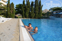 С зеленой и красивой территории бассейна открывается красивый вид на море и Генуэзскую крепость. Бассейн большой, чистый, имеет детскую секцию. Всегда есть свободные лежаки. Бар на пляже платный и работает редко.