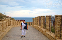 Пляж находится примерно 500 метров от отеля. Дорога до пляжа живописная, с видом на Генуэзскую крепость. Дорога отделана под крепость, вымощена камнем. Пляж песчаный, чистый. Но иногда за деньги пропускают на территорию пляжа слишком много посторонних туристов и пляж становится перенаселенным. Около пляжа есть рынок и большое количество разных кафе.В кафе прямо около пляжа покупали вкусные чебуреки.
