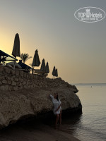 Риф потрясающий, много разных рыбок. Если плавать утром, морских обитателей всегда больше (скаты, мурена, черепаха). В один из дней видели удаляющейся плавник акулы, ребята пришедшие до нас показывали видео с ней. Парень спасатель дежурит ежедневно на понтоне.Если заплывать за ограждения или на кораллы будут ругаться-свистом. На пляже бар и обеденный перекус. В этом году сменили наматрасники на новые. Очень бы конечно хотелось и обновления лежаков.
