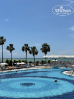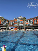 Всем привет 👋 Были в этом отеле уже 2 раза. И с радостью остановимся ещё. Путешествовали с супругом и ребенком, им тоже понравилось. Всё чисто, опрятно, аккуратно. Отзывчивый персонал. Отличный аквапарк,очень зеленая территория! Множество бассейнов,море рядом. Останавливались в блоке B и в блоке D. D конечно больше понравился,были на первом этаже,два входа и выхода(один из них на полянку) . Из блока B быстрее было попасть в главный ресторан 😅. Но рядом с блоком D также есть ресторан,где можно отведать пищу. Также рядом замечательный олива бар,с живой музыкой. Анимация была отличная,на дискотеки не ходили,так уж и не знаю есть ли они,думаю должны быть . В аквапарке ежедневно раздают мороженое и сладости,рядом заведение где можно взять фруктов и сделать себе свежевыжатый сок из апельсинов. Второй раз летали в середине мая,с погодой очень повезло,купались везде,разве что в аквапарке было освежающе,но что ни сделаешь ради ребенка,пришлось кататься. На пляже предлагают экскурсии,пару раз даже пытались купить на корабль,который подплывает к отелю,но так и не купили,долговато по времени в открытом море с маленьким ребенком. Территория отеля очень красивая и ухоженная,ребенок вечером стабильно ходил заниматься на детских тренажерах 😅,и играл в автоматы😆(за жетоны). В общем найдете чем занять себя и тем более ребенка в данном отеле. Я рекомендую этот отель и однозначно приедем снова!!!
